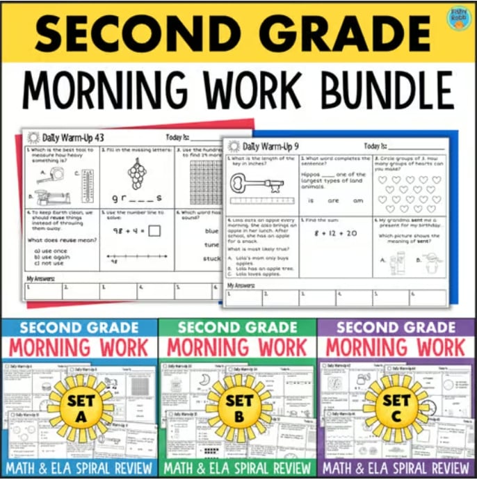This bundle of 2nd grade morning work packets will give your students plenty of practice and review of important second grade skills! Each day includes a mix of math and ELA tasks, all based on grade 2 standards. Occasionally there is a science-based question as well.